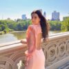 Vestido curto preto com aplicações em renda e decote profundo nas costas com aplicação de laço.