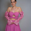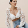 Top tomara que caia com recorte na frente, manga em renda, e lastex atrás