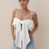 Top de laço com faixa removível e zíper lateral