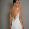 Vestido curto off white com aplicações em renda e decote profundo nas costas com aplicação de laço.